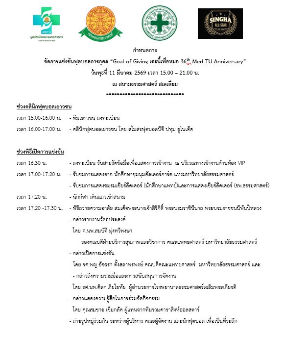 มหาวิทยาลัยธรรมศาสตร์ "Goal of Giving" เฉลิมฉลองครั้งที่ 36 Med TU Anniversary